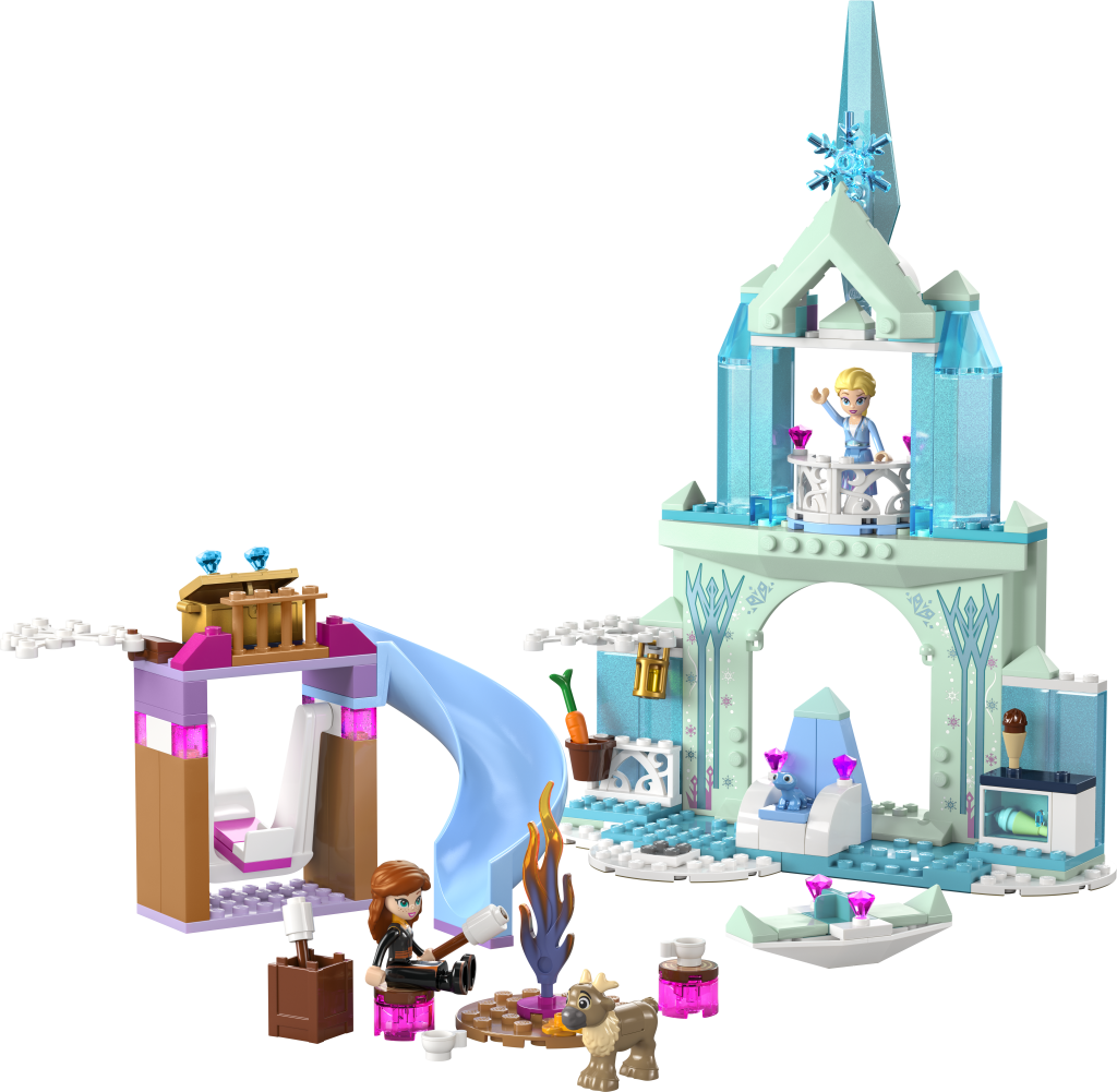 - Model hradu – Součástí této stavebnice na motivy Disneyho Ledového království je hrad inspirovaný Ledovým královstvím, minipanenky LEGO® | Disney Elsy a Anny a figurky LEGO | Disney Bruniho a sobího mláděte