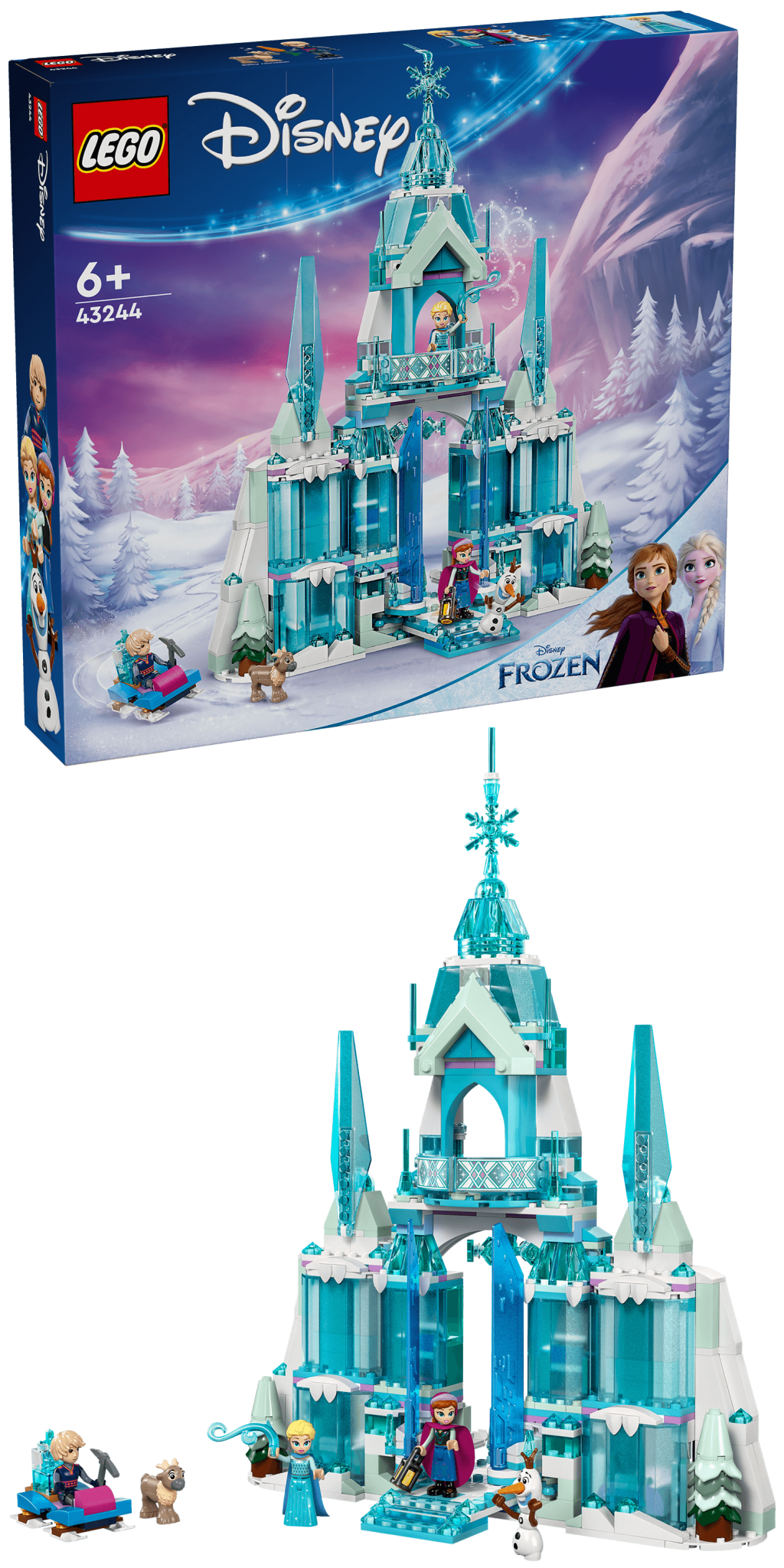 - "Fanoušci filmu Ledové království a děti od 6 let se ponoří do nekonečného hraní s propracovanou stavebnicí LEGO® | Disney (43244) Elsa a její ledový palác. Uvnitř krabice najdete třípatrový ledový palác s pohyblivou podlahou, která otevírá kouzelné dveře, padající lustr, 2 pokoje, Elsinu pracovnu s psacím stolem, kde může zkoumat ledové krystaly, balkon, sestavitelné sáně a řadu inspirativních prvků. Tato stavebnice pro děti obsahuje také minipanenky LEGO | Disney Elsy, Anny a Kristoffa, figurku LEGO | Disney sněhuláka Olafa a figurku LEGO | Disney sobího mláděte.
