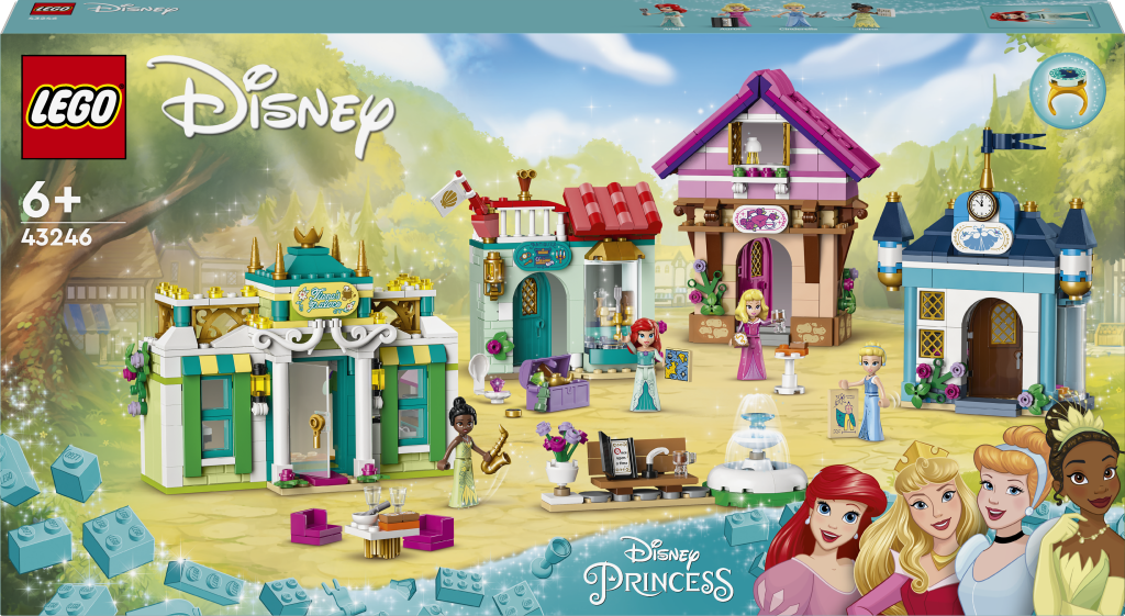 - Obrovská porce možností – Součástí jsou 4 budovy, menší prostor s květináčem, lavičkou a kašnou a minipanenky LEGO® | Disney Ariel, Šípkové Růženky, Popelky a Tiany