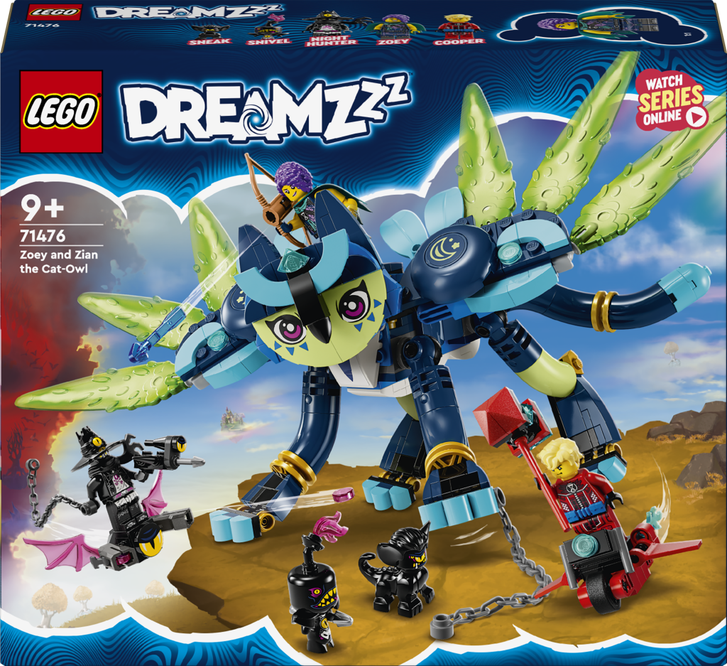 - 3 minifigurky – Součástí jsou hrdinové Zoey a Cooper a padouch Noční lovec a figurky Sneaka a Snivela ze světa LEGO® DREAMZzz™