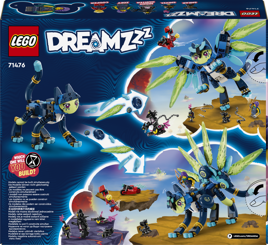 - Přestavitelný model zvířete – Děti od 9 let popustí uzdu fantazii s úchvatnou stavebnicí LEGO® DREAMZzz™ Zoey a kočkosova Zian, kterou lze sestavit hned 2 různými způsoby