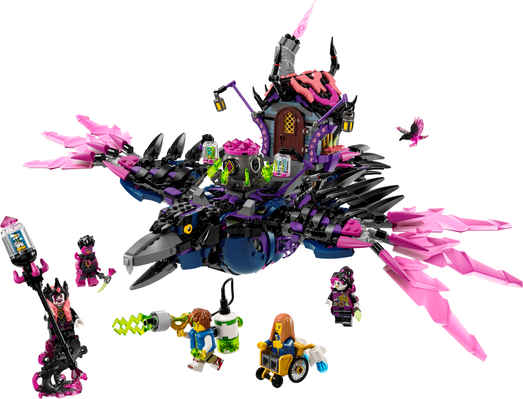 - Hračka se zvířátky pro děti – Popusťte uzdu fantazii s úchvatnou stavebnicí LEGO® DREAMZzz™ Nikdyčarodějnice a její Půlnoční krkavec pro kluky a holky od 9 let