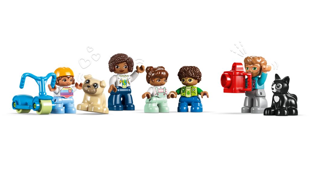 - Všichni jsou vítáni – Součástí stavebnice je 7 figurek, včetně maminky a tatínka, 3 dětí a psa a kočky, které přináší rozmanité herní možnosti