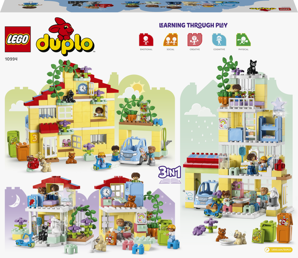 - Vzdělávací domeček – Stavebnice LEGO® DUPLO® Město 10994 Rodinný dům 3 v 1 podporuje rozvoj sociálních a emočních dovedností a přináší neomezenou zábavu s přestavováním