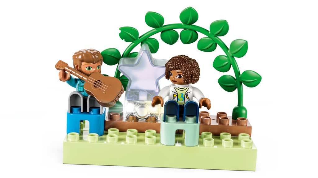 - Rozzařte hraní – Součástí stavebnice je zábavná kostka s motivem hvězdy, kterou děti mohou zapínat a vypínat, když se v domečku jde spát (3 baterie LR44 jsou součástí balení)