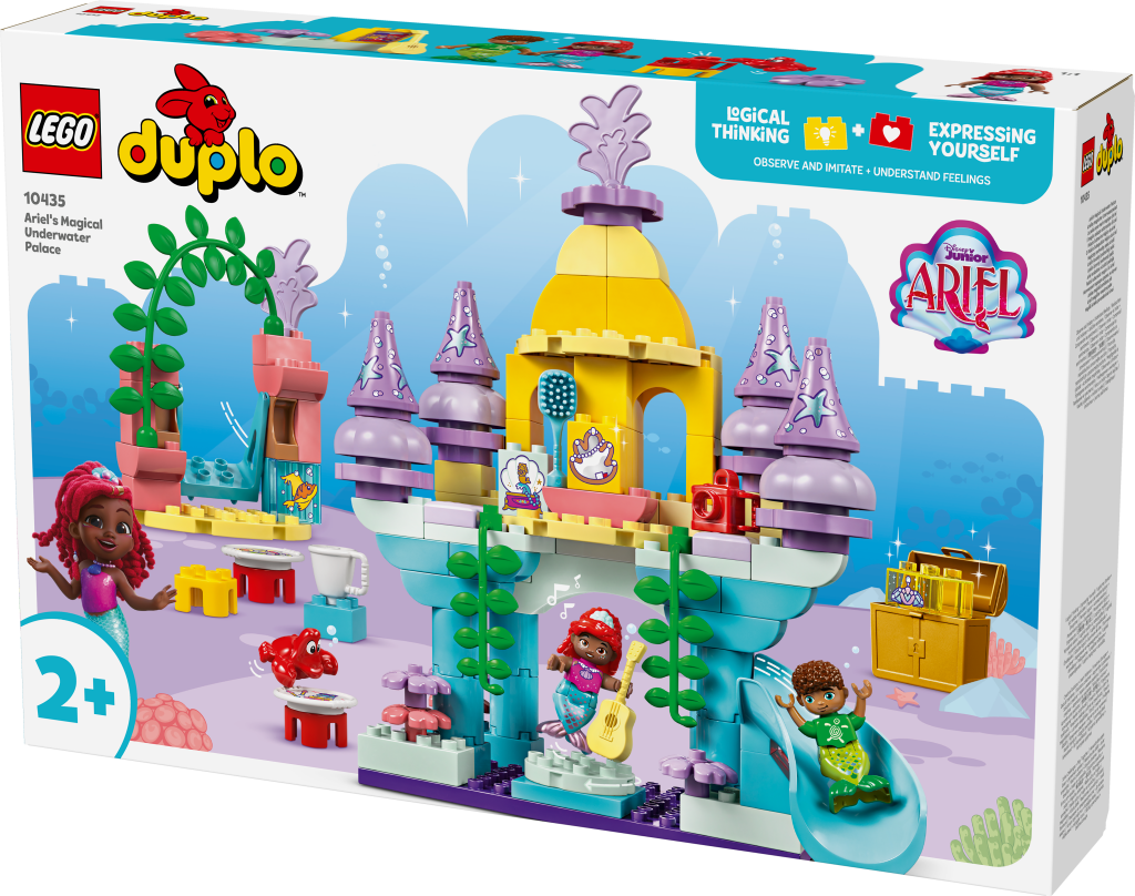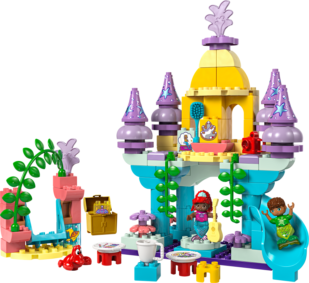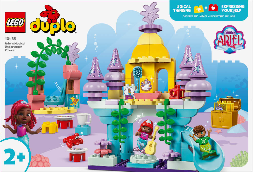 - "Ponořte se s fanoušky Disneyho Malé mořské víly do podmořského světa plného zábavy se stavebnicí LEGO® DUPLO® | Disney (10435) Arielin kouzelný podmořský palác. Děti od 2 let využijí své logické myšlení a sebevyjádření při stavění scén z televizního seriálu Ariel z dílny Disney Junior.