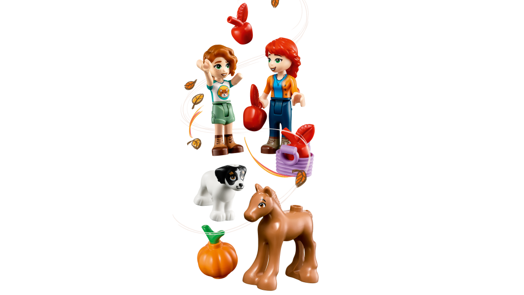- 4 minipanenky a doplňky – Stavebnice obsahuje postavy LEGO® Friends Autumn, Lea a Aliyu, a navíc maminku Miu, pejska Daisy a hříbě, a navíc spoustu doplňků pro kreativní zábavu