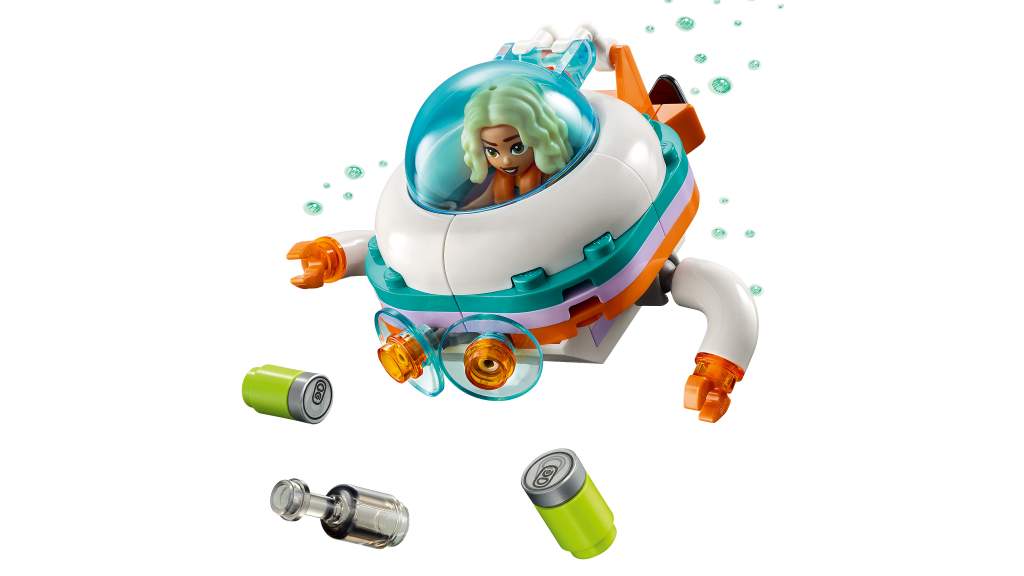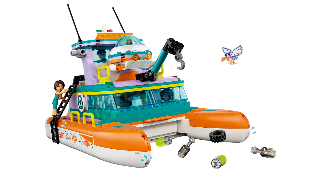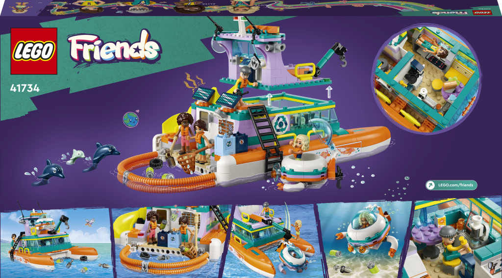 - Záchrana mořského života pro děti od 7 let – Děti se zájmem o přírodu si mohou se stavebnicí LEGO® Friends Námořní záchranářská loď (41734) hrát na čištění pobřeží městečka Heartlake