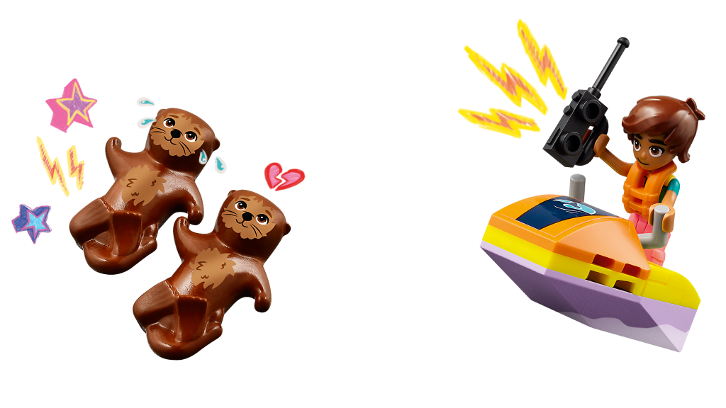 - Péče o zvířecí kamarády – Děti mohou vyprávět příběhy, zachraňovat mořské vydry a pečovat o ně. Ve stavebnici nechybí vodní skútr, skluzavka, rehabilitační areál a kousek oceánu