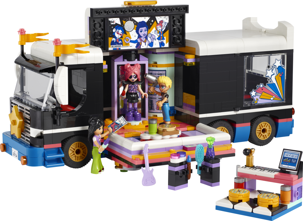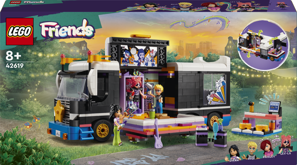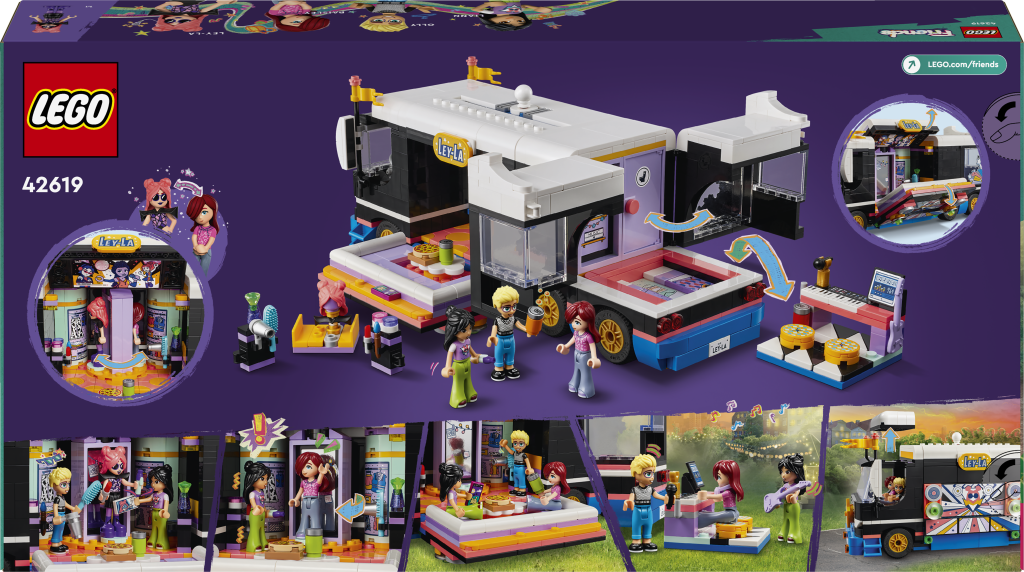 - Nalaďte se na hudbu s autobusem pro turné – Součástí stavebnice LEGO® Friends Autobus pro turné popových hvězd pro děti od 8 let jsou 4 minipanenky a spousta doplňků