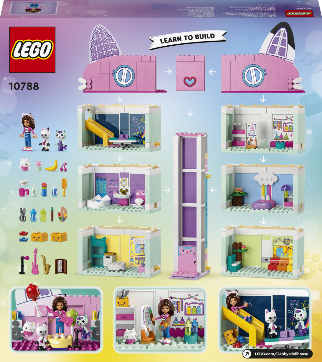- Zábavný domek s 8 pokoji – Fanoušci seriálu z dílny DreamWorks Animation od 4 let mohou prozkoumat domek na vlastní pěst se stavebnicí LEGO® (10788) Gábinin kouzelný domek s oblíbenými postavami a autentickými doplňky