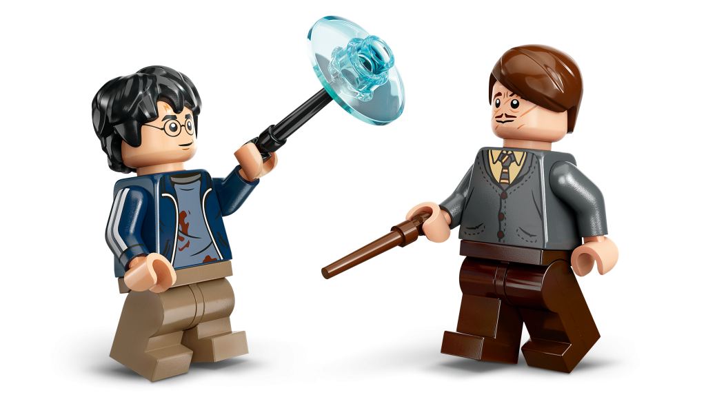 - 2 minifigurky LEGO® – Remus Lupin a Harry Potter™ s hůlkami. K hůlkám můžete navíc připojit dílky LEGO představující vyslané kouzlo