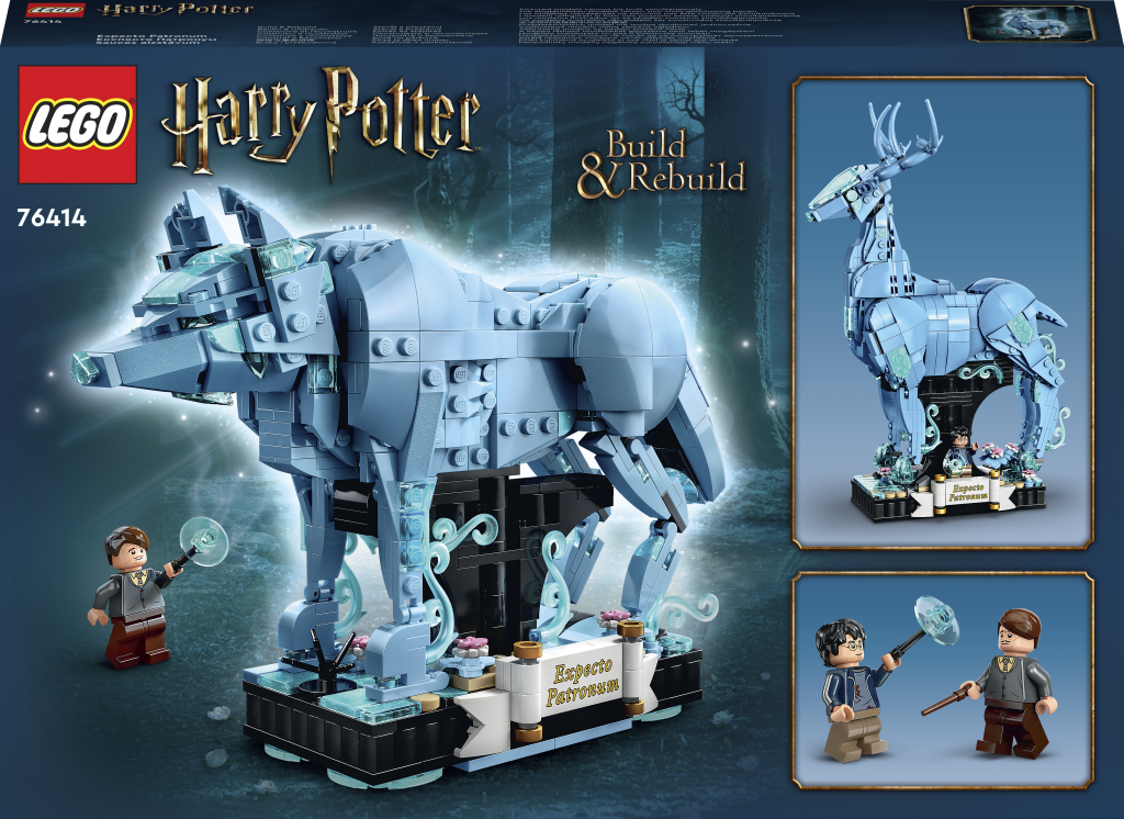 - LEGO® Harry Potter™ Expecto Patronum (76414) – výstavní stavebnice 2 v 1 – Vyberte si, zda postavíte patrona v podobě jelena patřícího Harrymu Potterovi, nebo patrona v podobě vlka, který patří profesoru Remusovi Lupinovi