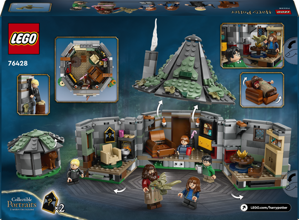 - 2 ze 14 sběratelských bradavických portrétů – Součástí této stavebnice jsou zlaté dílky se 2 ze 14 náhodných bradavických portrétů, které si lze vystavit v Hagridově boudě