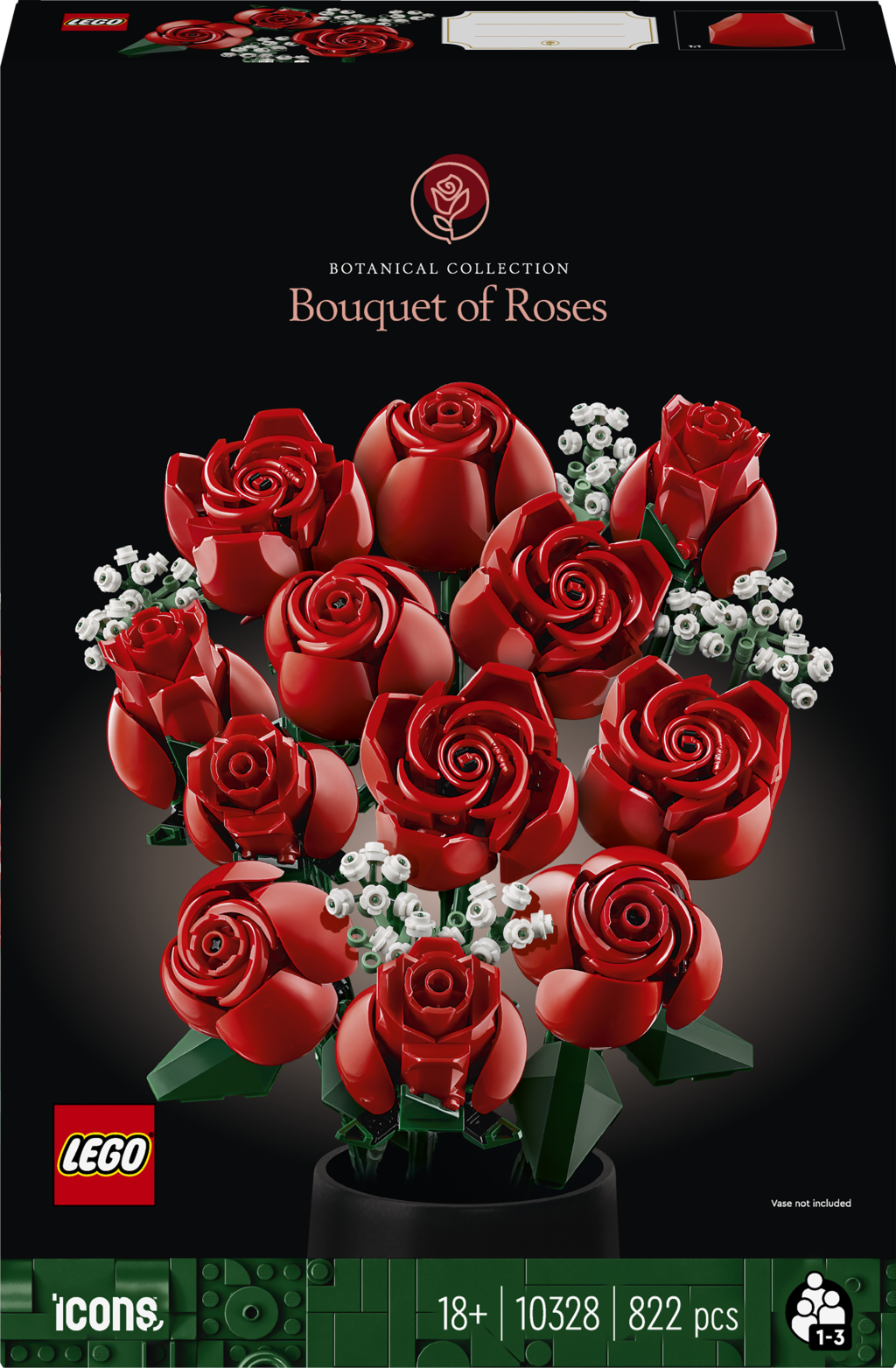 - Rozměry – Stavebnice má celkem 822 dílků a nejvyšší růže měří přes 31 cm na délku