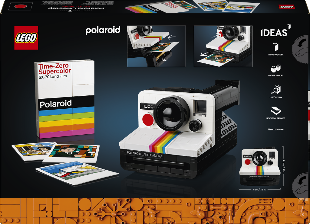 - Sestavitelný balíček filmu Time-Zero Supercolor SX-70 Land Film – V krabici nechybí 3 ilustrované „fotografie“ vynálezce Polaroidu Edwina H. Landa, domu LEGO® House a sestry návrháře z řad fanoušků, který tento model inspiroval