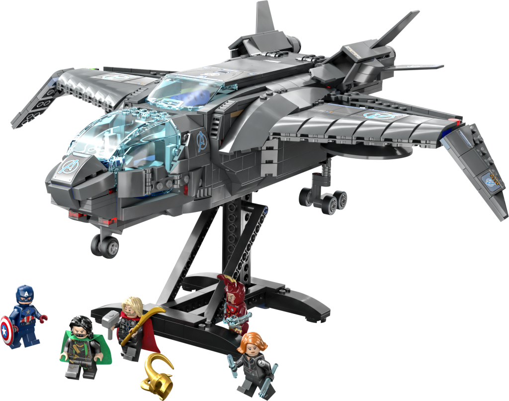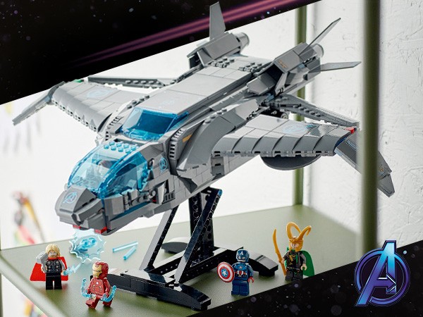 - Stavějte, hrajte si a vystavujte – Tato propracovaná replika slavné stíhačky Quinjet zaujme otevíracím kokpitem, prostorem pro cestující a zadní částí, ale také zatahovacím podvozkem a nastavitelnými křídly