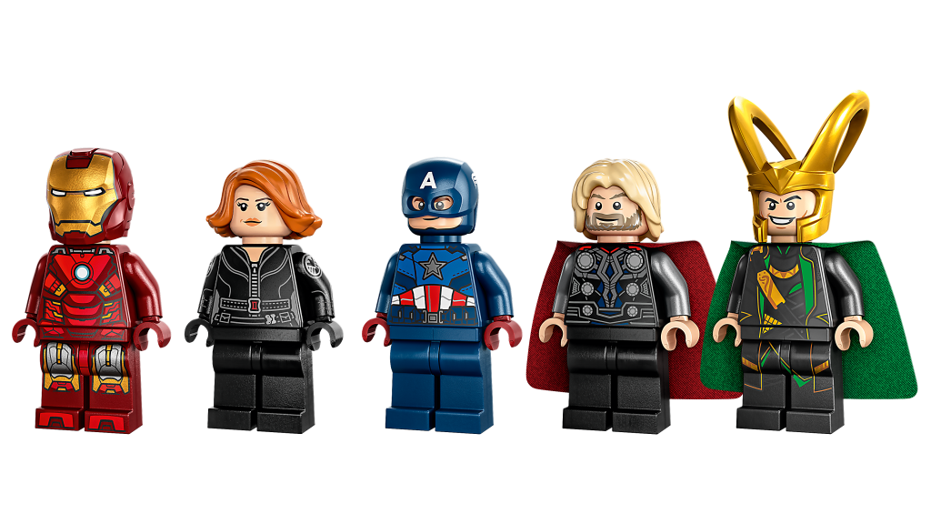 - Známé postavy – Součástí je 5 ikonických minifigurek: Black Widow, Thor se svým kladivem, Iron Man, Captain America se svým štítem a Loki se svým žezlem