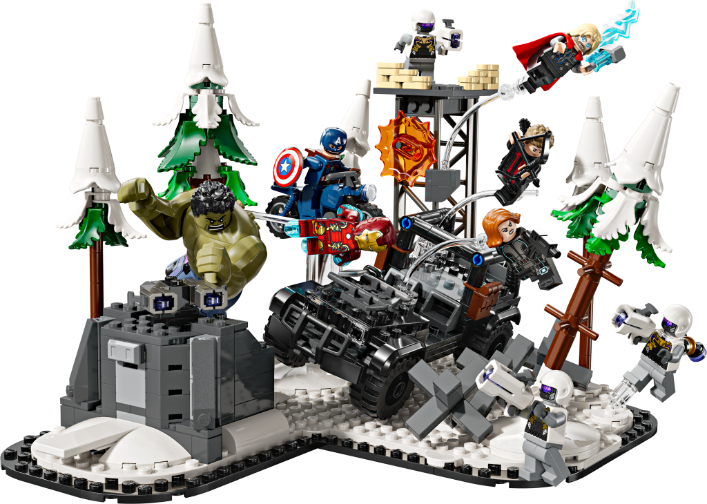 - Stavebnice Avengers – Tato sestavitelná superhrdinská stavebnice představuje epickou bitvu z filmu Avengers: Age of Ultron od studia Marvel s řadou minifigurek a autentických prvků LEGO® Marvel