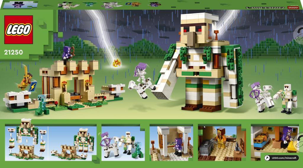 - Stavebnice Minecraft® s golemem – Děti mohou proměnit stavebnici LEGO® Minecraft 21250 Pevnost železného golema z bojové pevnosti na obrovského golema s velkýma pohyblivýma rukama