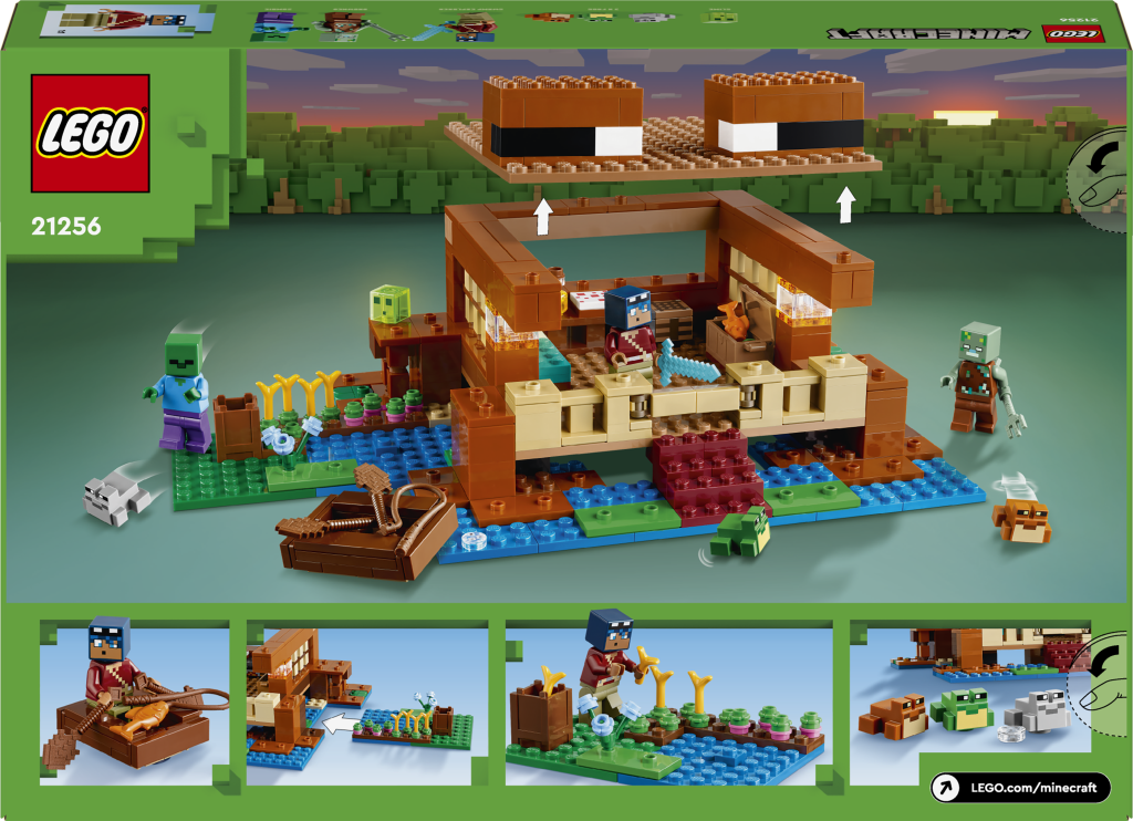 - Stavebnice s minifigurkami ze světa Minecraft® – Propracovaná stavebnice obsahuje sestavitelný dům s řadou postav ze hry: průzkumník bažin, zombie, utopenec, sliz a 3 žáby