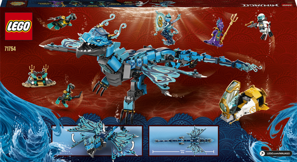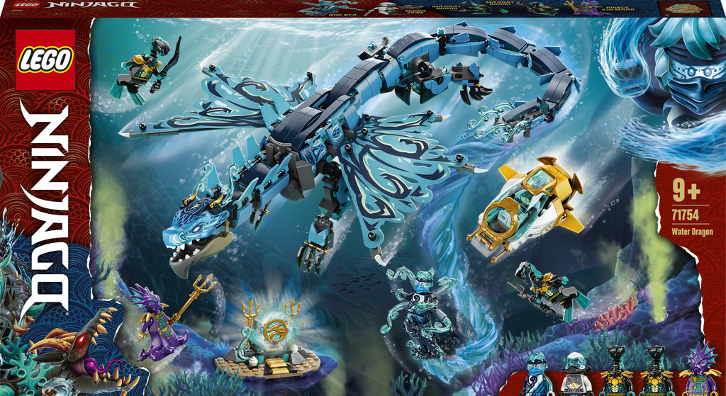 - "S touto vysoce propracovanou stavebnicí Vodní drak (71754) si děti mohou přehrávat neuvěřitelné příběhy z televizního seriálu NINJAGO®: Seabound. Působivá figurka draka má pohyblivou hlavu, čelist, nohy, krk, křídla a ocas, který lze použít jako zbraň. Sada je tedy zárukou takřka neomezené zábavy.