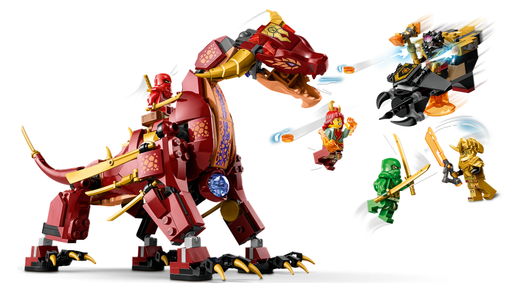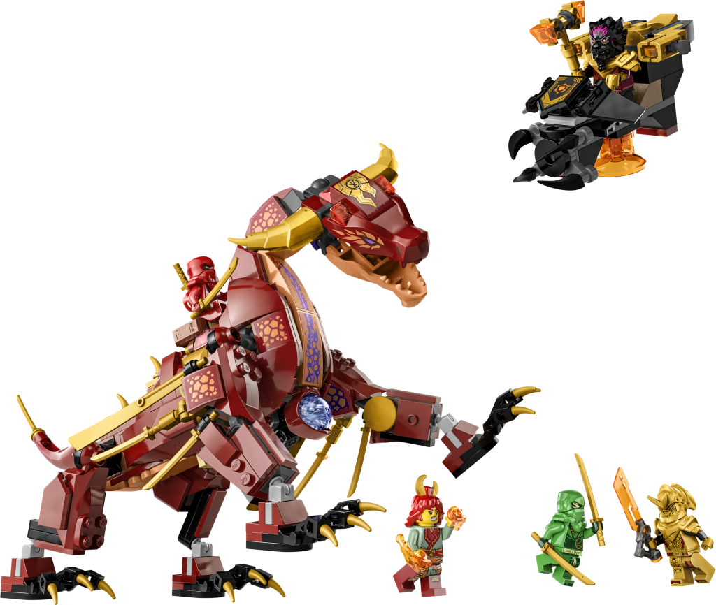 - Hračka s drakem nindžů – Nadšení fanoušci nindžů od 8 let se stavebnicí Heatwave a jeho transformační lávový drak (71793) mohou znovu prožít bitvy z televizního seriálu NINJAGO® Dračí povstání