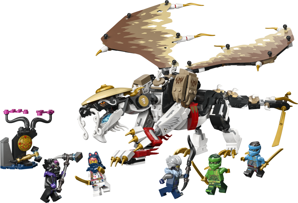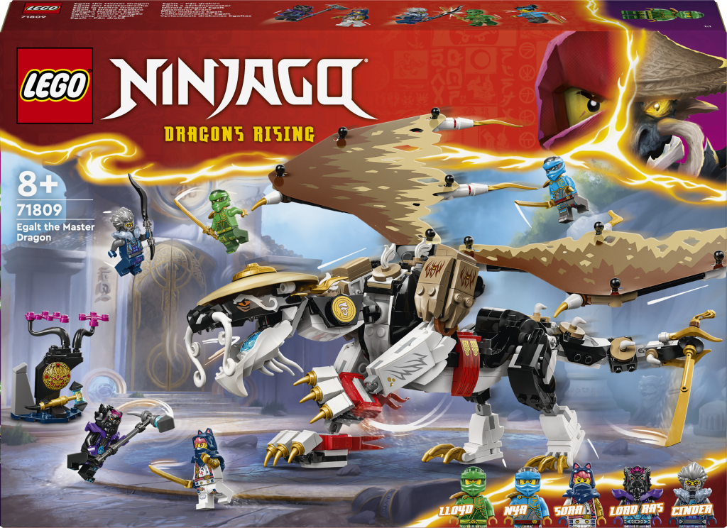 - Pohyblivá figurka draka – Děti si připomenou své oblíbené scény z 2. řady televizního seriálu NINJAGO® Dračí povstání s Pánem draků a pohyblivou hlavou, ocasem, nohama, rukama a fóliovými křídly