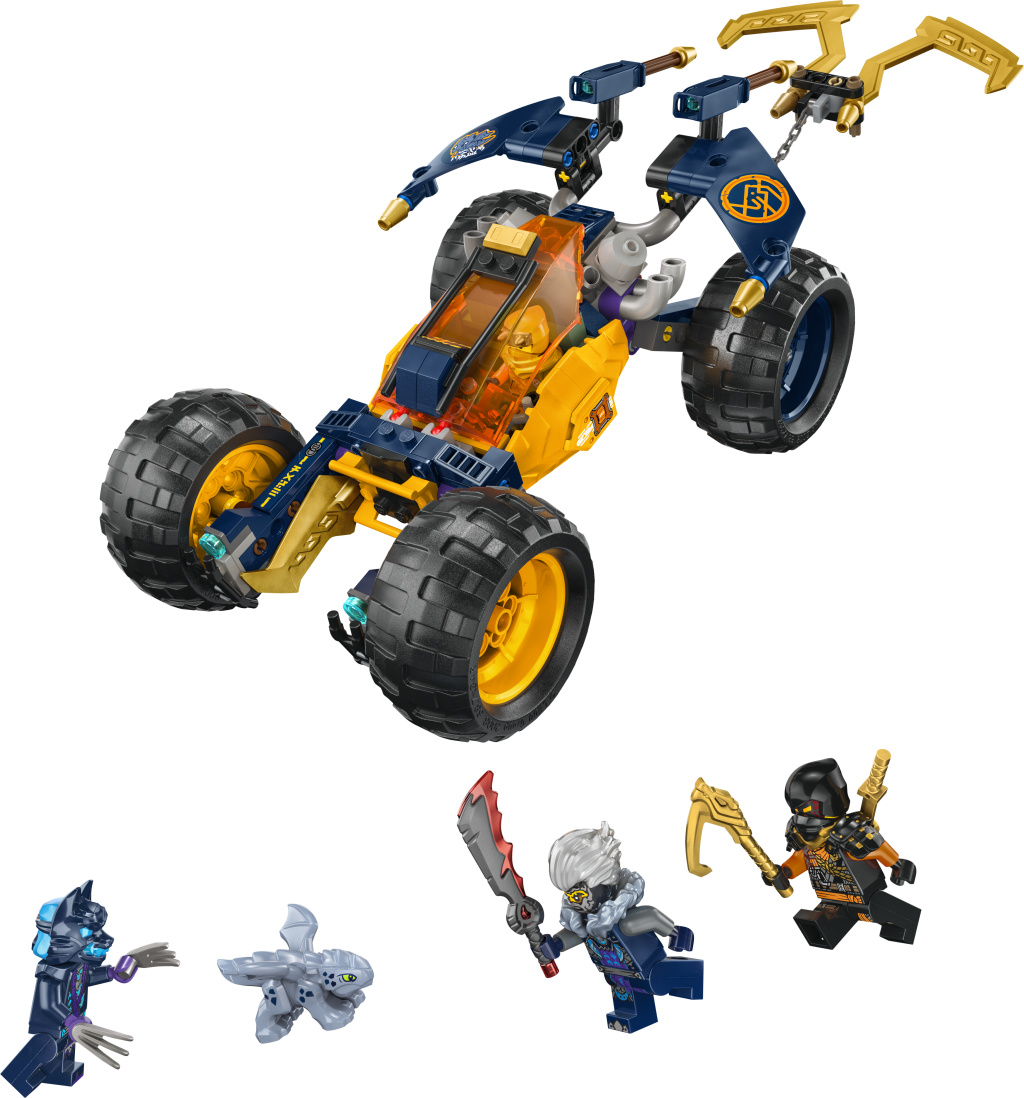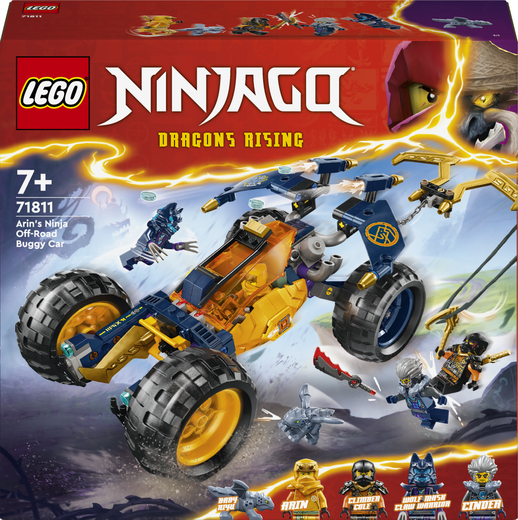 - Model nindžovské terénní buginy pro děti – Děti od 7 let si s Arinovým terénním vozidlem připomenou bitvy z 2. řady televizního seriálu NINJAGO® Dračí povstání
