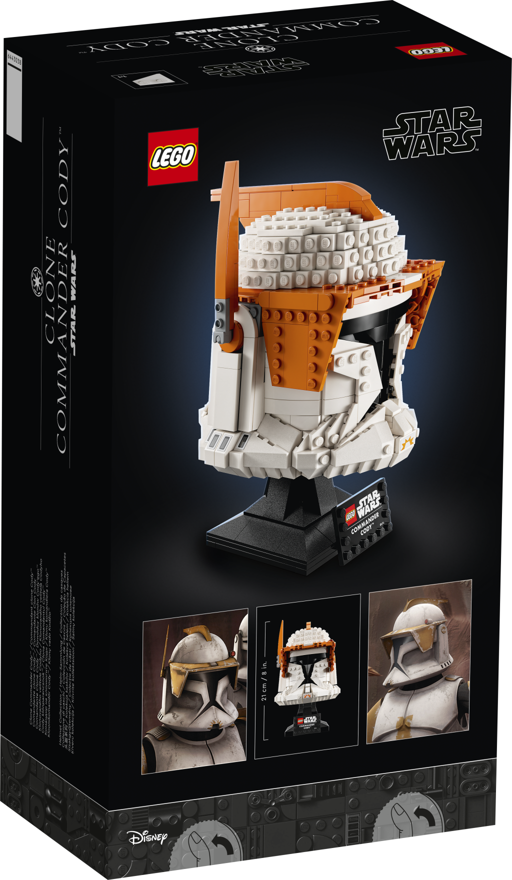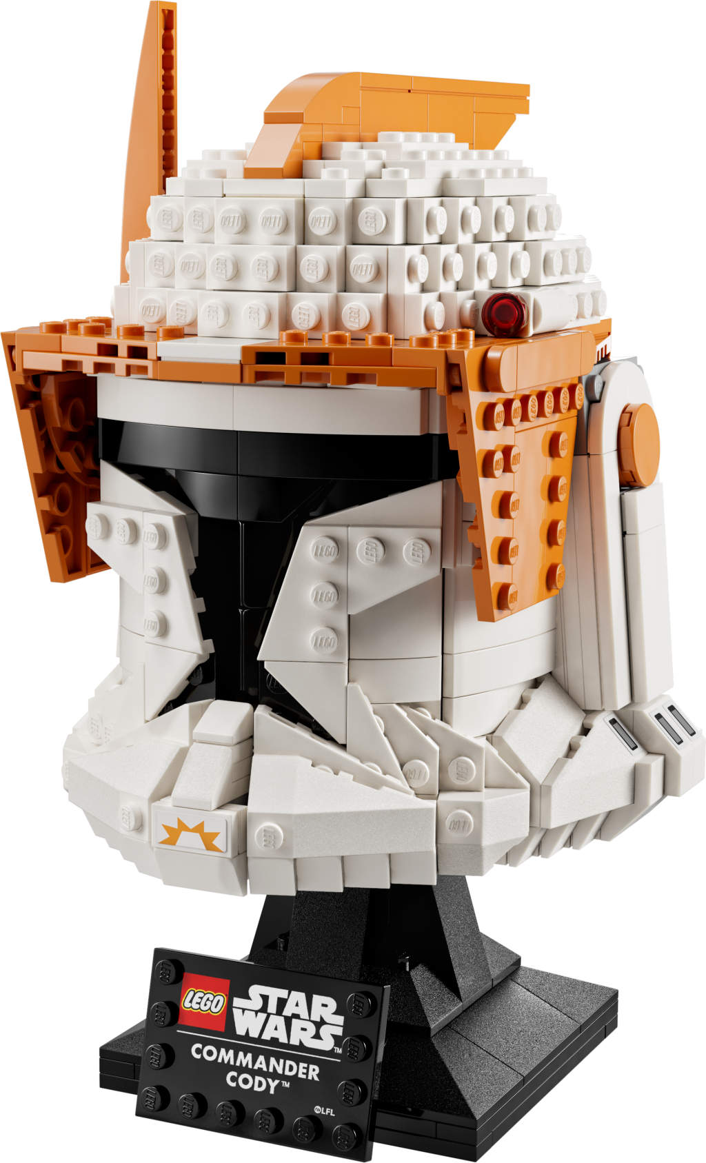 - Připomeňte si akční vzhled klonovaného velitele Codyho prostřednictvím této propracované helmy LEGO® Star Wars™. Dostaňte se do kreativní zóny a vystihněte každý detail pokrývky hlavy loajalního maršála. Pochlubte se svým výtvorem na sestavitelném podstavci s cedulkou, na němž se bude působivý výstavní kus nádherně vyjímat a připomene vám epické scény ze seriálu Star Wars: Klonové války.