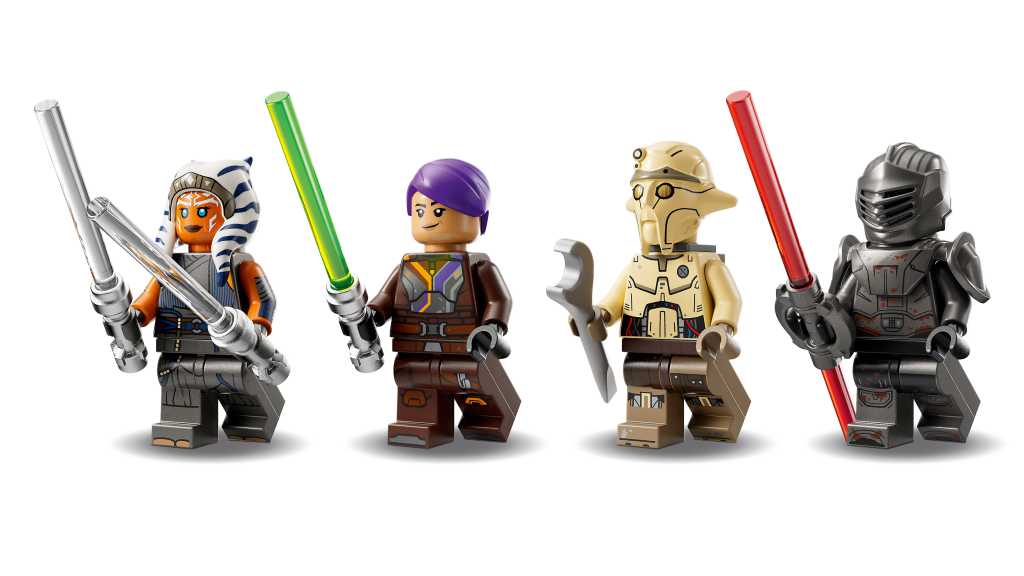 - Vydejte se přímo do akce s úchvatným Jediským raketoplánem T-6 Ahsoky Tano! Uložte zbraně a nástroje do úložného prostoru a naskočte do kokpitu a připravte se na start. Zaklapnutím podvozku seřiďte křídla do letového režimu. Zaměřte nepřátelské stíhačky pomocí vystřelovačů. Přistaňte s raketoplánem, popadněte Ahsočiny světelné meče, spojte se s Sabine Wren a utkejte se s Marrokem!