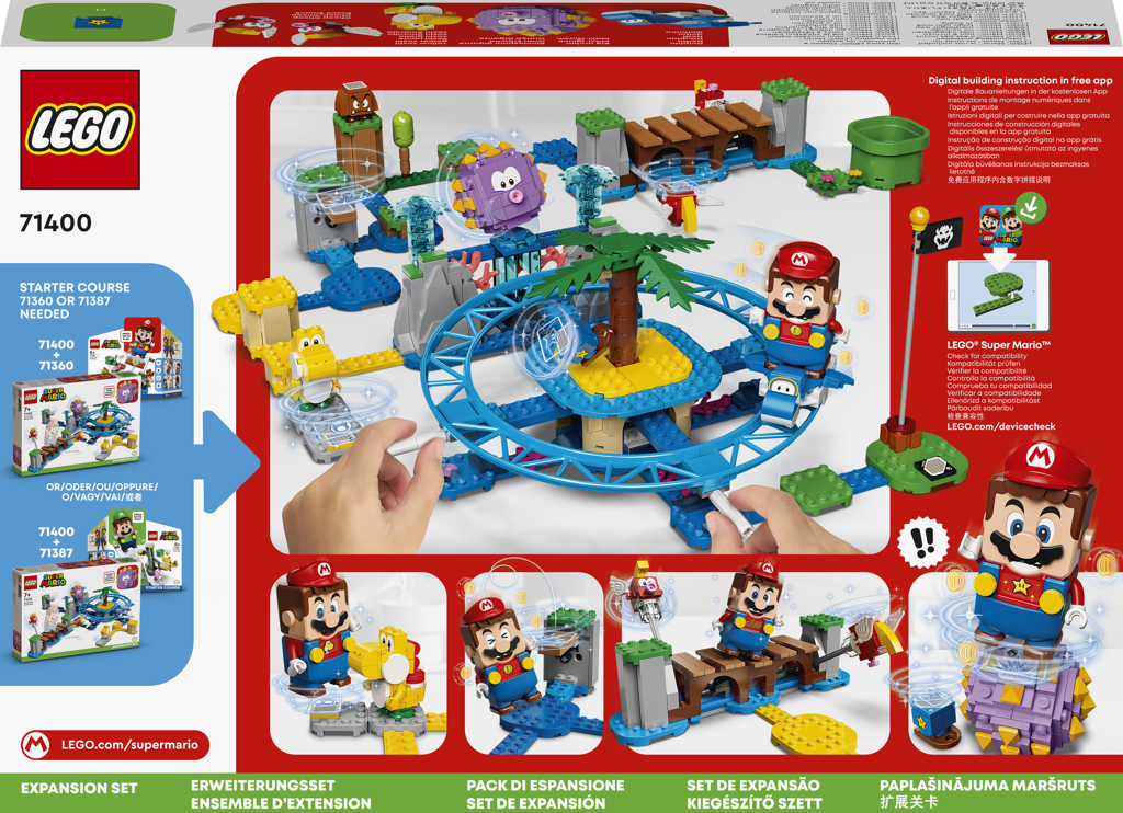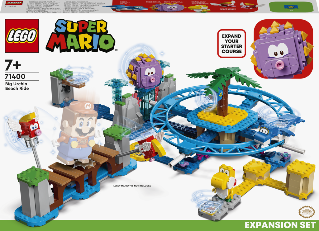 - Akční úroveň na pláži – Vyrazte ve světě LEGO® Super Mario™ na pláž s rozšiřujícím setem Plážová jízda s Big Urchinem (71400) a užijte si hraní v jednom nebo s rodinou a kamarády