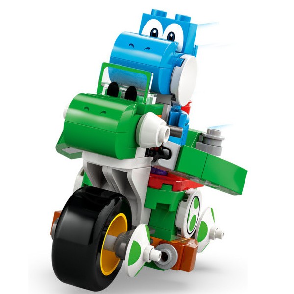 Tento skvělý dárek pro od 7 let obsahuje model motorky Yoshi Bike z kostek a poprvé v setu LEGO Super Mario také figurku Light-Blue Yoshi. Pomozte Light-Blue Yoshimu jezdit mezi 4 dopravními kužely, střílet krunýře z motorky a vyhýbat se Banana.