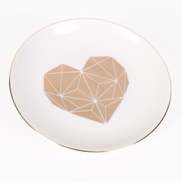 Talířek keramický s puntíky se zlatým srdíčkem uprostřed a zlatým olemováním vám skvěle ozdobí a doladí vaši romantickou párty.