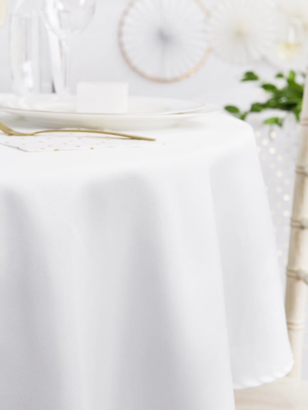 Ubrus, matný, kulatý, bílý, průměr 280 centimetrů.