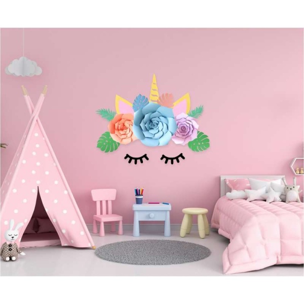 DEKORACE na stěnu Jednorožec (NUTNO DOTVOŘIT) je papírová dekorace k sestavení, oživí váší slečně dětský pokoj, který tak získá jedinečnou atmosféru. Dekorace je v krásných jemných pastelových barvách.