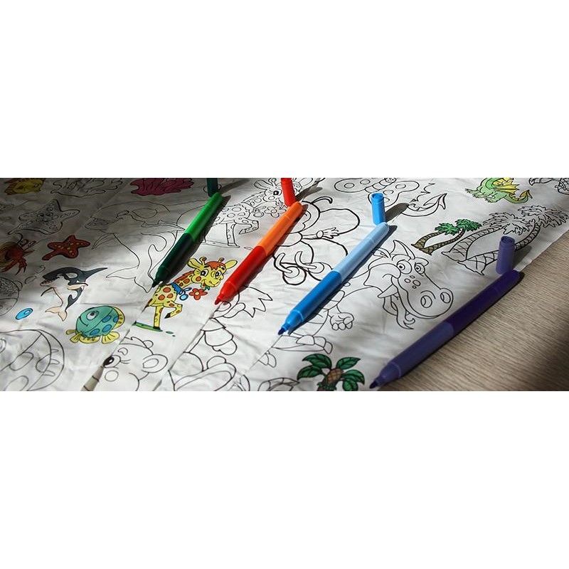 Ubrusy nepouštějí barvu a můžete barvit barvami, pastelkami, nabo použít lihové fixy.