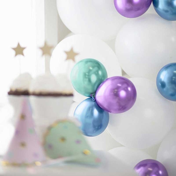 Mini balónky lesklé jsou skvělou volbou pro zdobení prostoru jak v exteriéru, tak interiéru. Jejich zelená záře s chromovaným povrchem jistě přitáhne pozornost. Lze s nimi také doplnit balónkový buket s jinými kontrastními barvami.