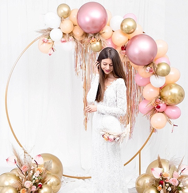 Samovolně stojící brána ve tvaru kruhu je výjimečnou a oblibenou mobilní prostorovou dekorací na svatby, firemní akce a narozeninové oslavy, kde potřebujeme vytvořit perfektní designové pozadí. Brána je vyrobena z kovu ve zlaté barvě. Průměr kruhu po sestavení je cca 2 metry. Bránu snadno složíte svépomocí, po složení má stabilní konstrukci. Oblouk dzdobíte balonky nebo květinovými úvazy, tylem závěsnými řetězy, světýlky apod.