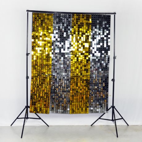 Na konstrukci jsou upevněné dekorační panely - čtverce o rozměru 30 x 30 cm zlatý a stříbrný