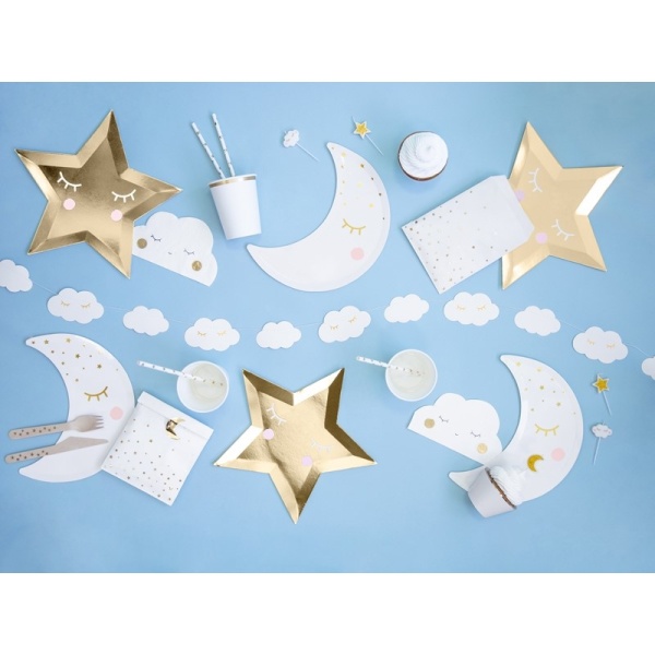 Papírové talířky ve tvaru zlaté hvězdy jsou skvělým doplňkem každé narozeninové oslavy nebo tématické Moon star párty.