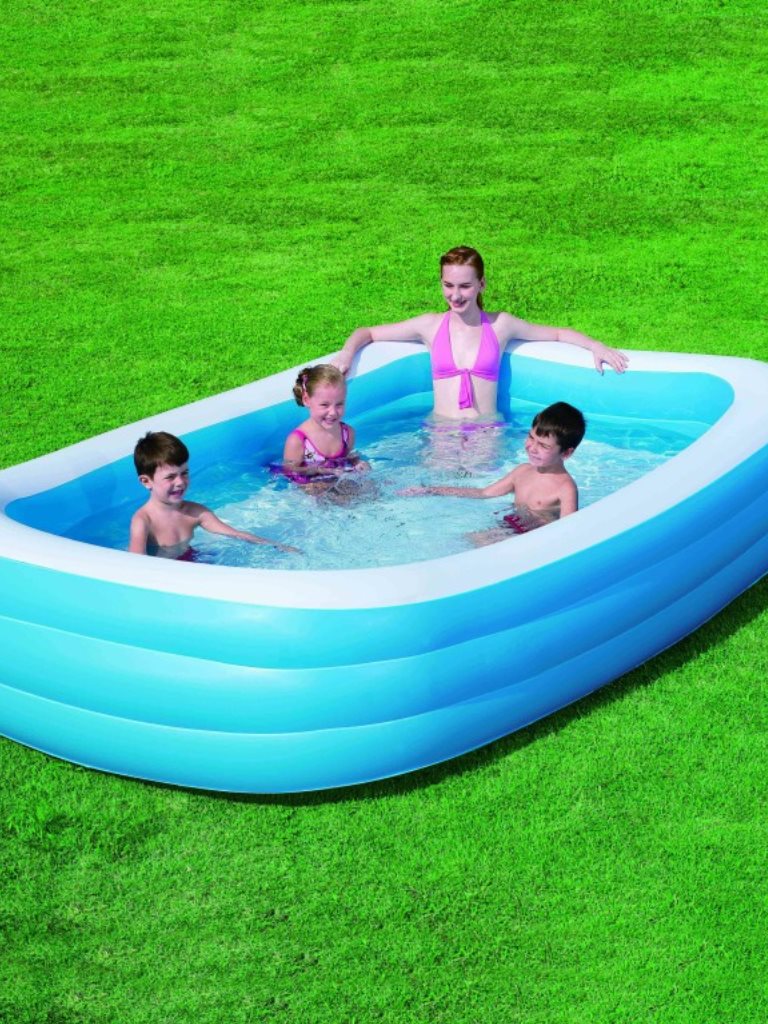 Obdelníkový rodinny bazén Deluxe pro děti od 6 let o velikosti 305×183×56 cm. Pevná konsturkce s extra silnými stěnami, …