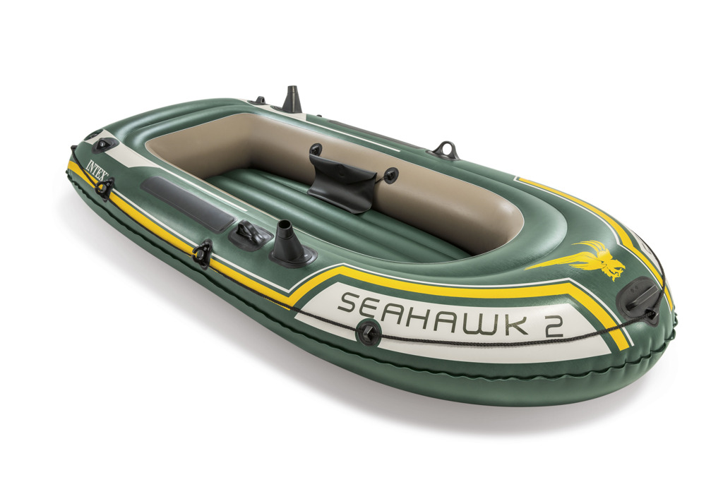 - Člun Intex Seahawk 2 set. Nafukovací člun Seahawk ze sportovní serie Intex a max.nosností 200kg + plastová pádla + ruční pumpa 30cm. Rozměry 236 × 114 × 41 cm. 3 vzduchové komory. Ventil pro rychlé nafouknutí a vyfouknutí. Nafukovací podlaha. Nosnost 200kg. Silná oka na pádla. Oko na ukotvení člunu. Oka na uchycení motoru. Vak na výbavu. Držák rybářského prutu. Provaz po obvodu lodi. Síla stěn 0,50 mm. Materiál PVC bez použití ftalátů. Certifikát GS TÜV. Značka Intex.