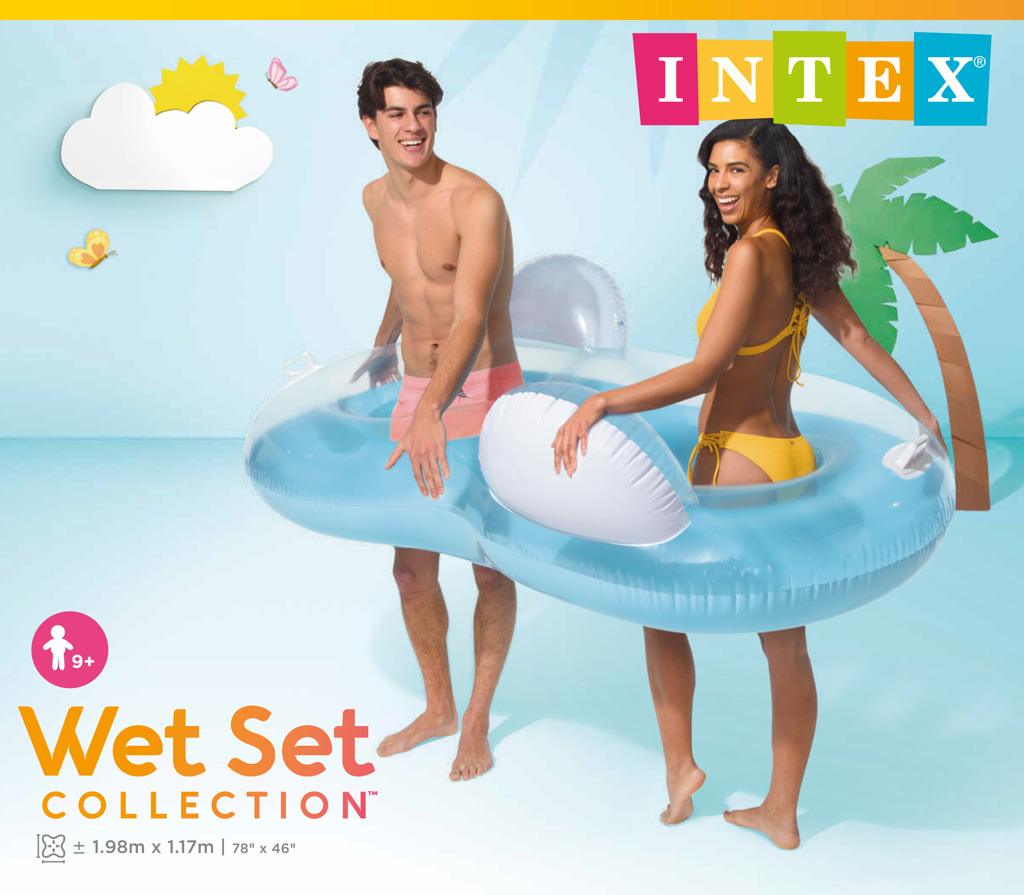 | Nafukovací kruh pro dva má přibližnou velikost 198 × 117 cm. Rozměry: 30 cm × 27 cm × 12 cmVáha: 2,15 kgVěk: od 9 let |