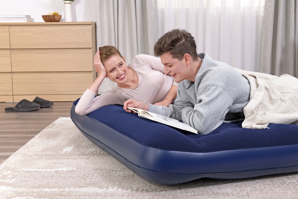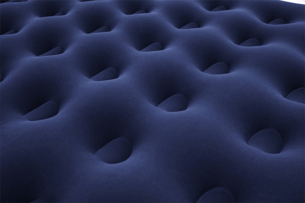 - Matrace je vyrobena z pevného a odolného vinylu a má zabudovanou nožní pumpu. Horní část je potažena měkkým materiálem, pro zpříjemnění relaxace. Odolná konstrukce a pružnost matrace je zaručena díky nafukovacímu rámu typu coil-beam, což je spojení horní a dolní vrstvy matrace pomocí komor. Matrace je velmi pohodlná, je ideální na zahradu, na kempování ve stanu. V domácnosti ji můžete využít jako náhradní postel pro hosty. Součástí balení je opravná záplata.