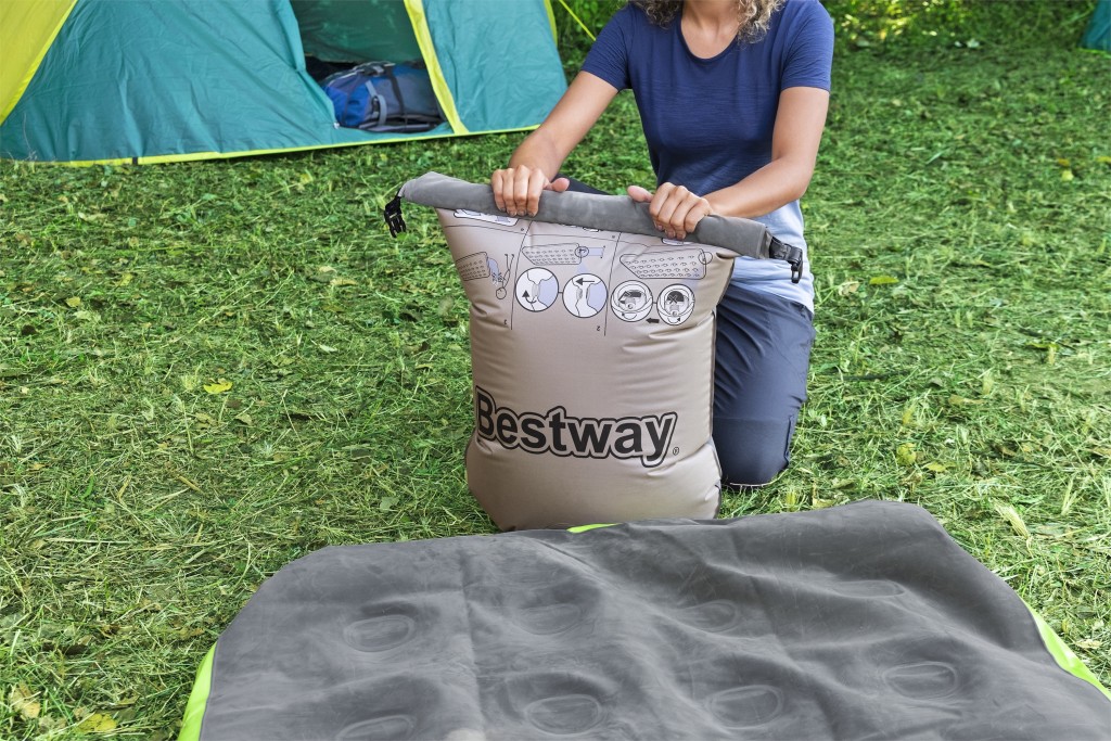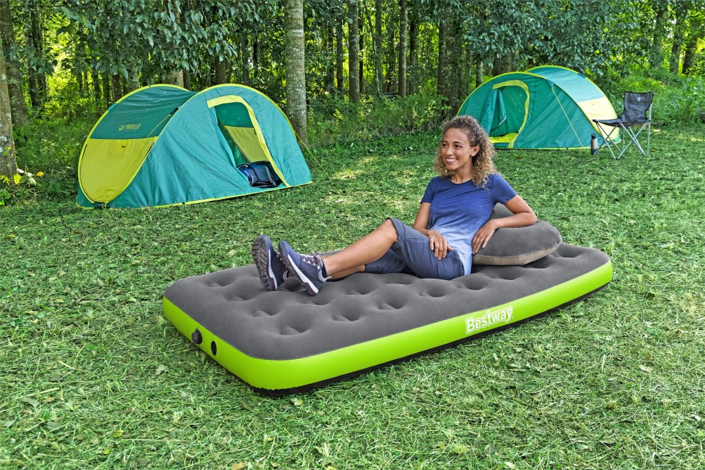 - Velikost nafouknuté matrace je cca 188 × 99 × 22 cm. Matrace je vhodná pro 1 osobu s maximální nosností 150 kg. Doba nafouknutí: 50 sekund (5–7 stlačení). Vyrobeno z odolného vinylu. Robustní konstrukce s coil-beam.