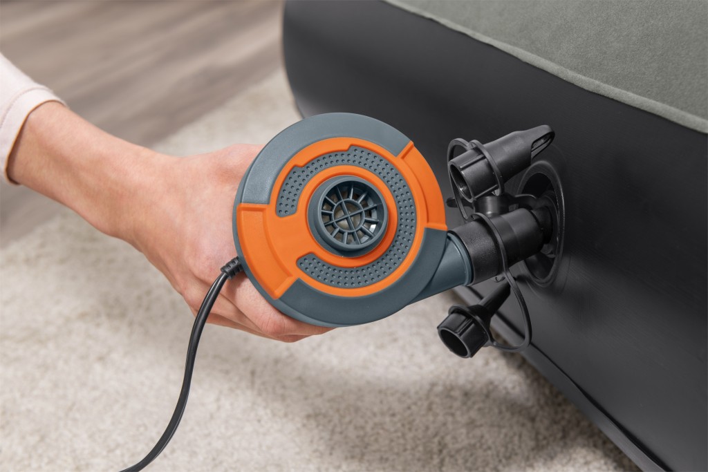 - Velikost nafouknuté matrace je cca 2.03m x 1.52m x 30cm. Matrace s maximální nosností 300 kg. Opravná záplata je součástí balení.