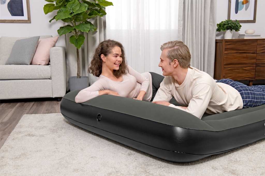 | Velikost nafouknuté matrace je cca 2.03m x 1.52m x 30cm. Matrace s maximální nosností 300 kg. Opravná záplata je součástí … |