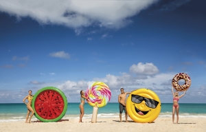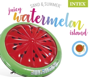 - Nafukovací matrace v designu melounu o velikosti 183 cm x 23 cm. Po obvodu umístěné úchytky s lanem.