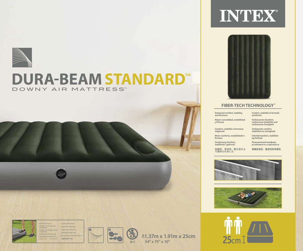 | Nafukovací postel o velikosti 1,37 m x 1,91 m x 25 cm. Maximální nosnost 272 kg. Čas nafouknutí je 3,5 minuty. Rozměry: 37 … |